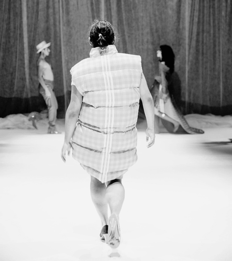Med en klädställning som redskap skapas akrobatik, finurliga lösningar och oväntade möten mellan kropp och kläder.